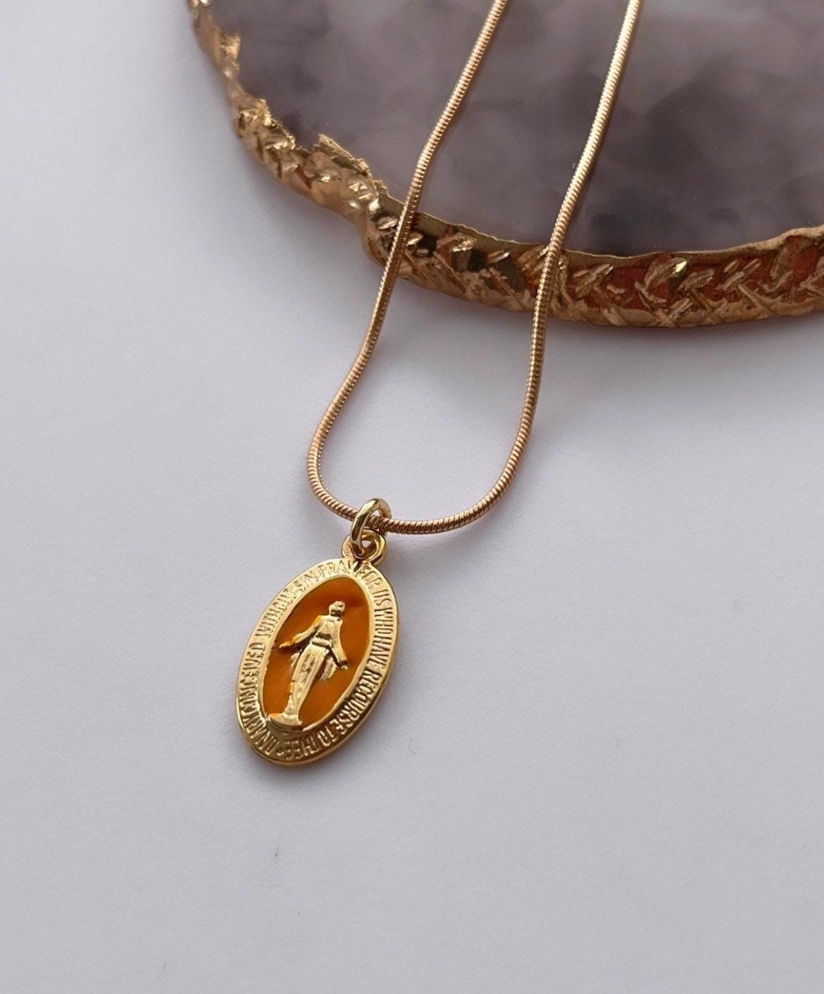 Catholic Necklace, Virgin Mary Necklace Gold, Miraculous Medal Necklace, Saint Pendant Gold, 18K Gold Filled Necklace, Protection Necklace