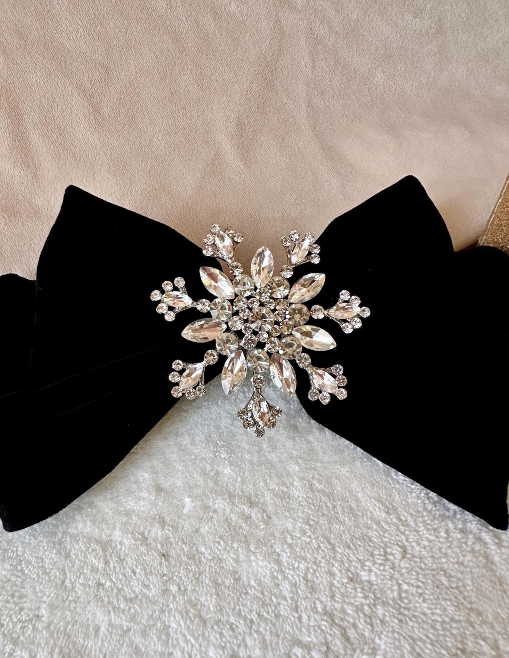 Made with regal velvet and embellished with a dazzling vintage rhinestone snowflake, my black velvet hair bow clip is a unique present for all the coquettes in your life. You can't go wrong when gifting my embellished and festive hair bow this Christmas!