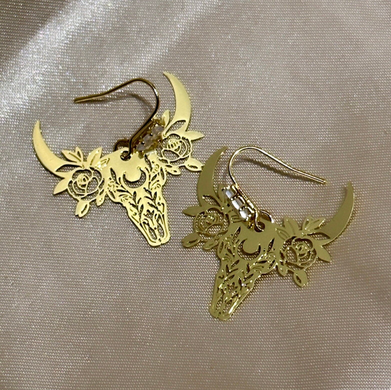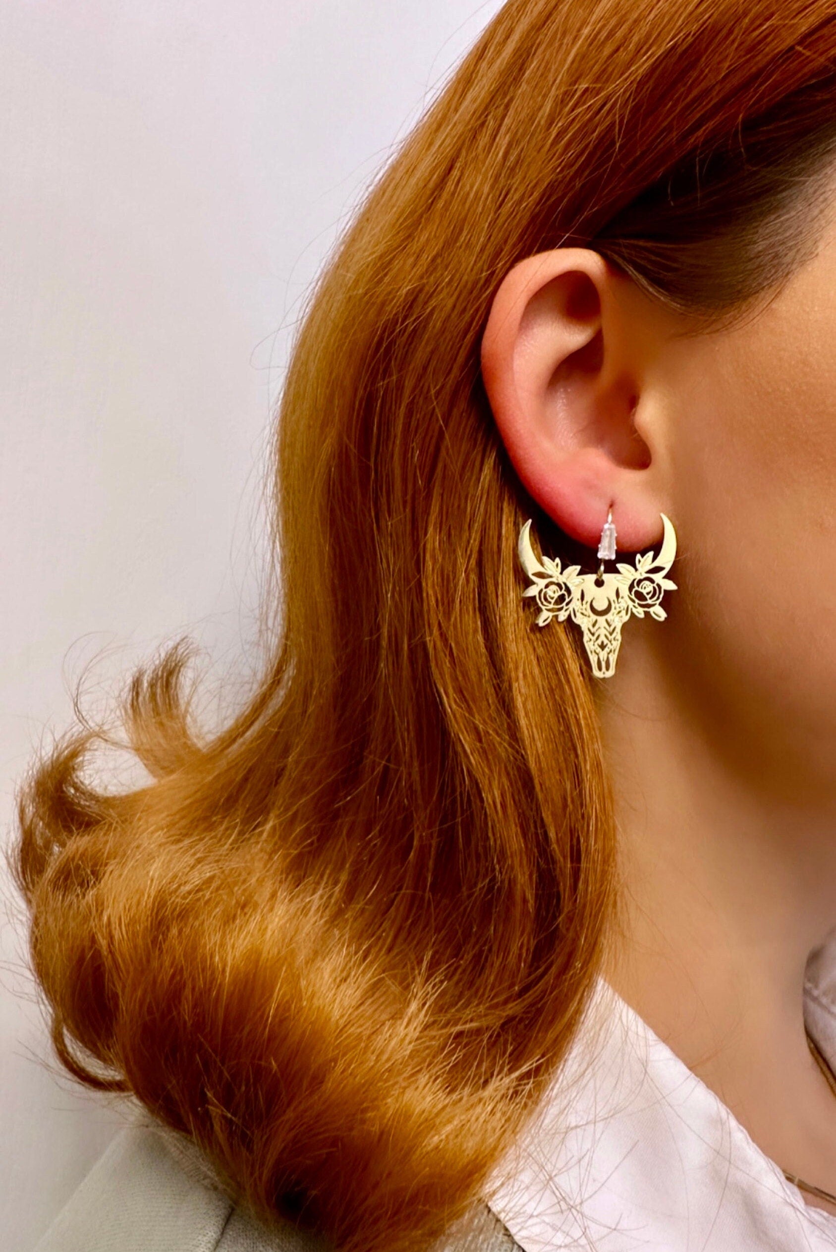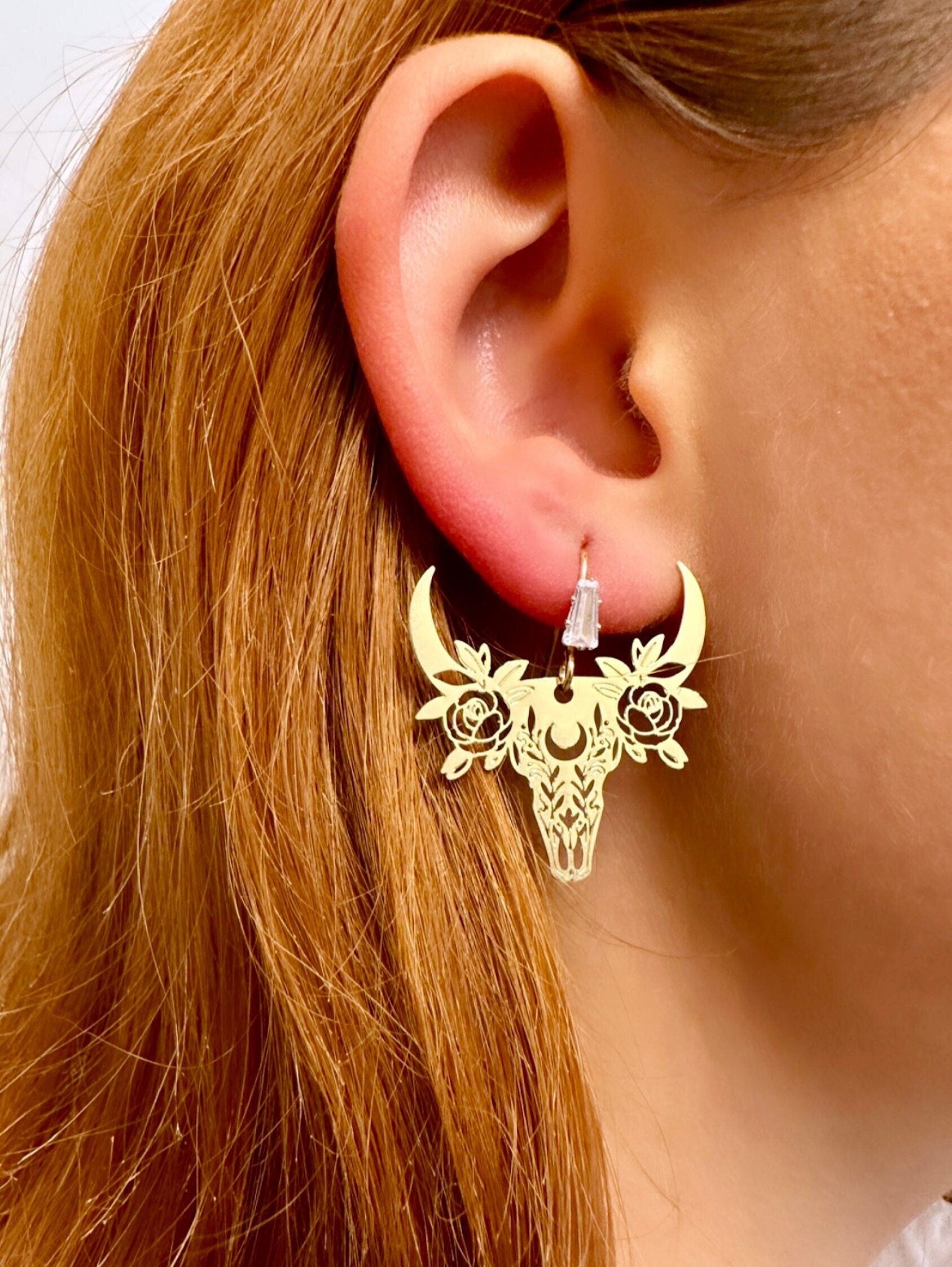 Cow Head Earrings, Cowgirl Earrings, Bull Skull Earrings, Gold Skull Earrings, Western Earrings, Boho Dangle Earrings, Laser Cut Earrings