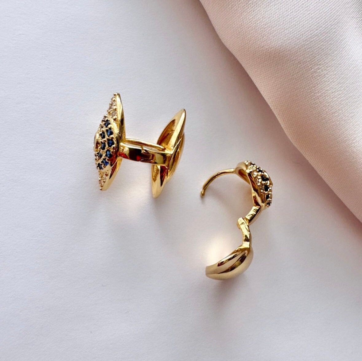 My Turkish studs are entirely handmade, using the finest materials, and my best skill set. These gold and blue cz evil eye earrings are:
