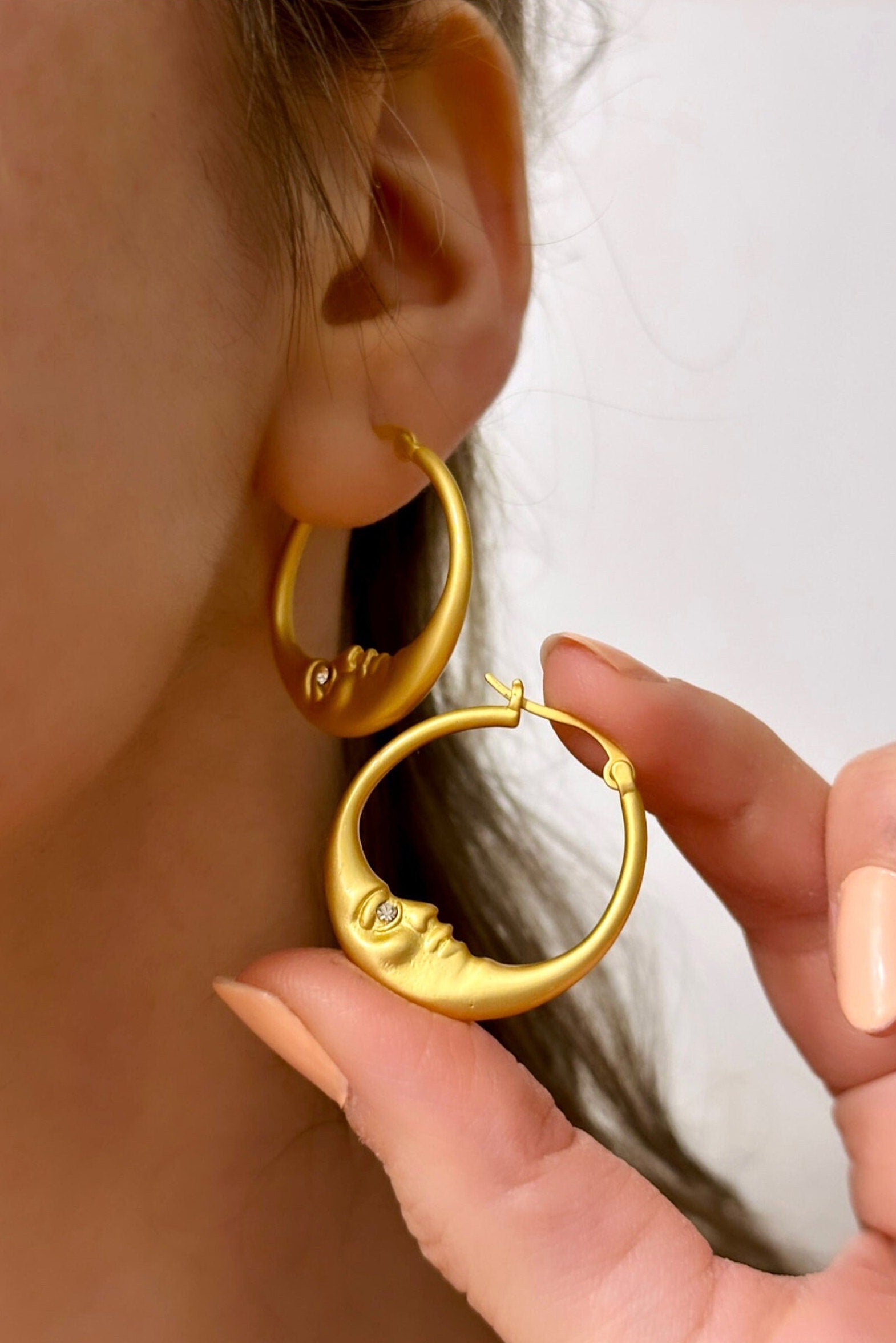 My celestial wedding earrings are entirely handmade, using the finest materials, and my best skill set. The dazzling moon hoop earrings are:
