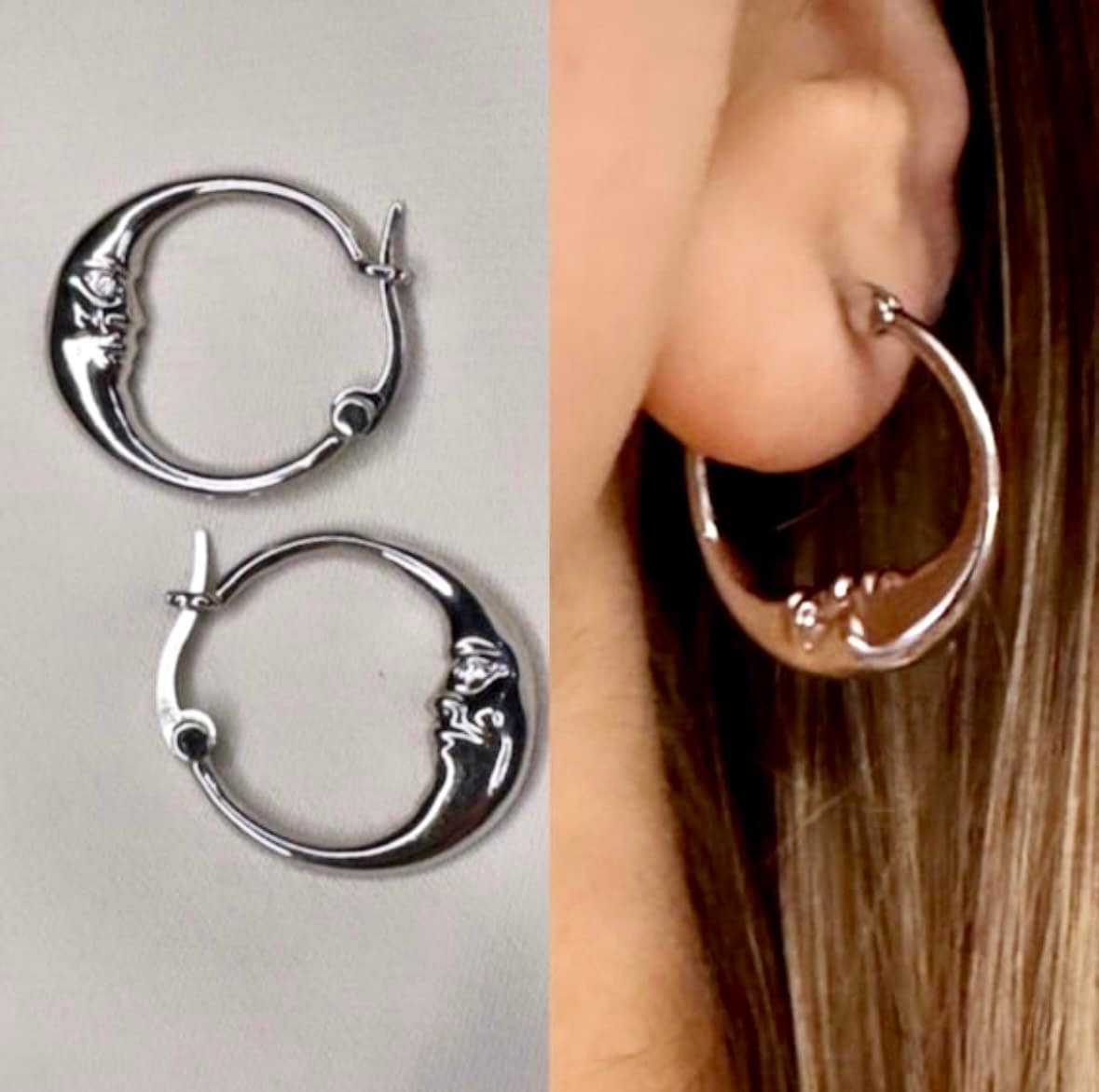 moon hoop earrings - silver moon earrings - moon hoops - moon goddess - small silver hoops - moon huggies - mini hoop earrings - celestial wedding - wanderlust jewelry - dainty hoop earrings - waterproof earrings - star hoop earrings - cool earrings