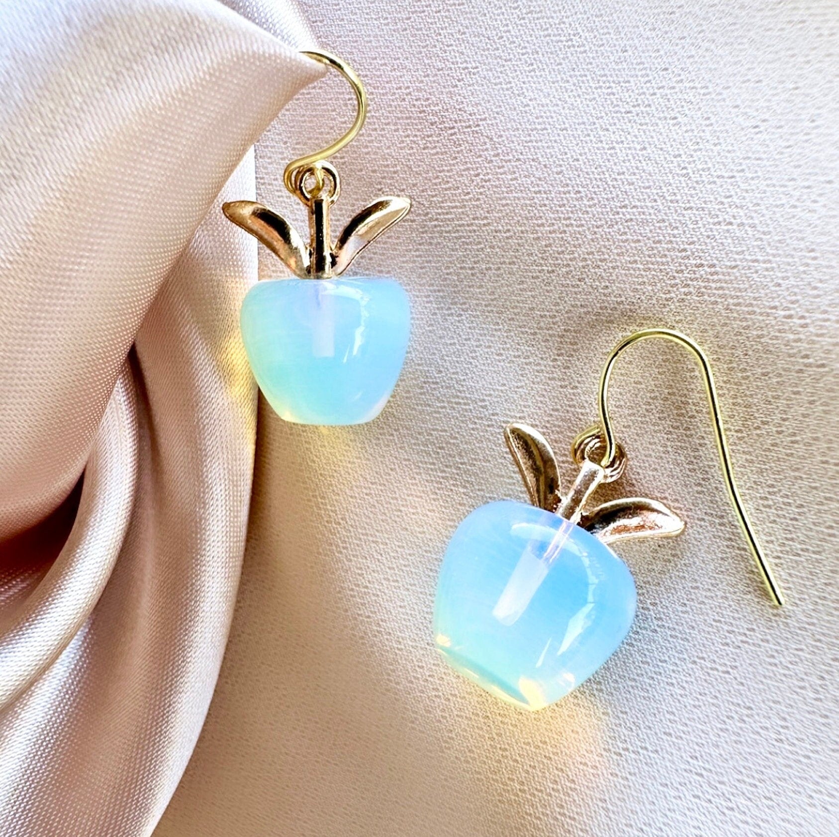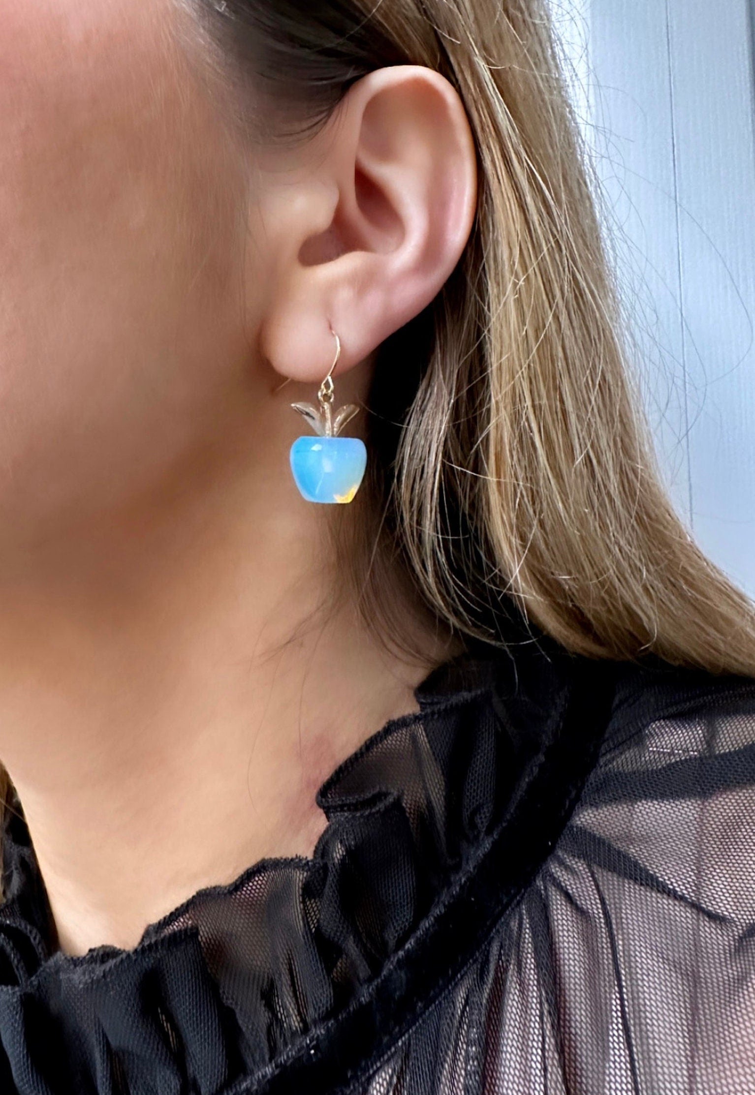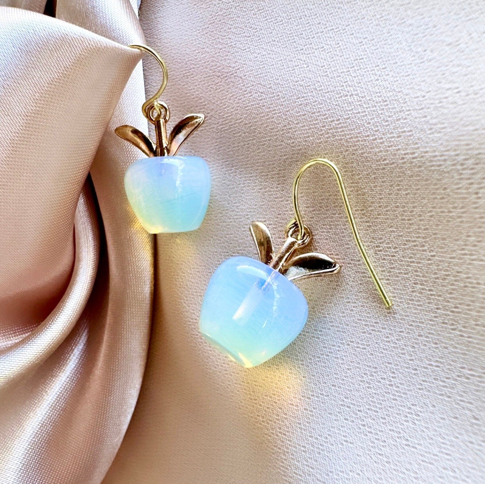 Made with 18K gold plated ear wire, tarnish-free stainless steel and delicate moonstone apples, my quirky gold fruit earrings are the perfect compliment to any outfit idea! My moonstone drop earrings are a great gift idea for any special occasion to all the women in your life. You can't go wrong when gifting my apple dangle earrings!